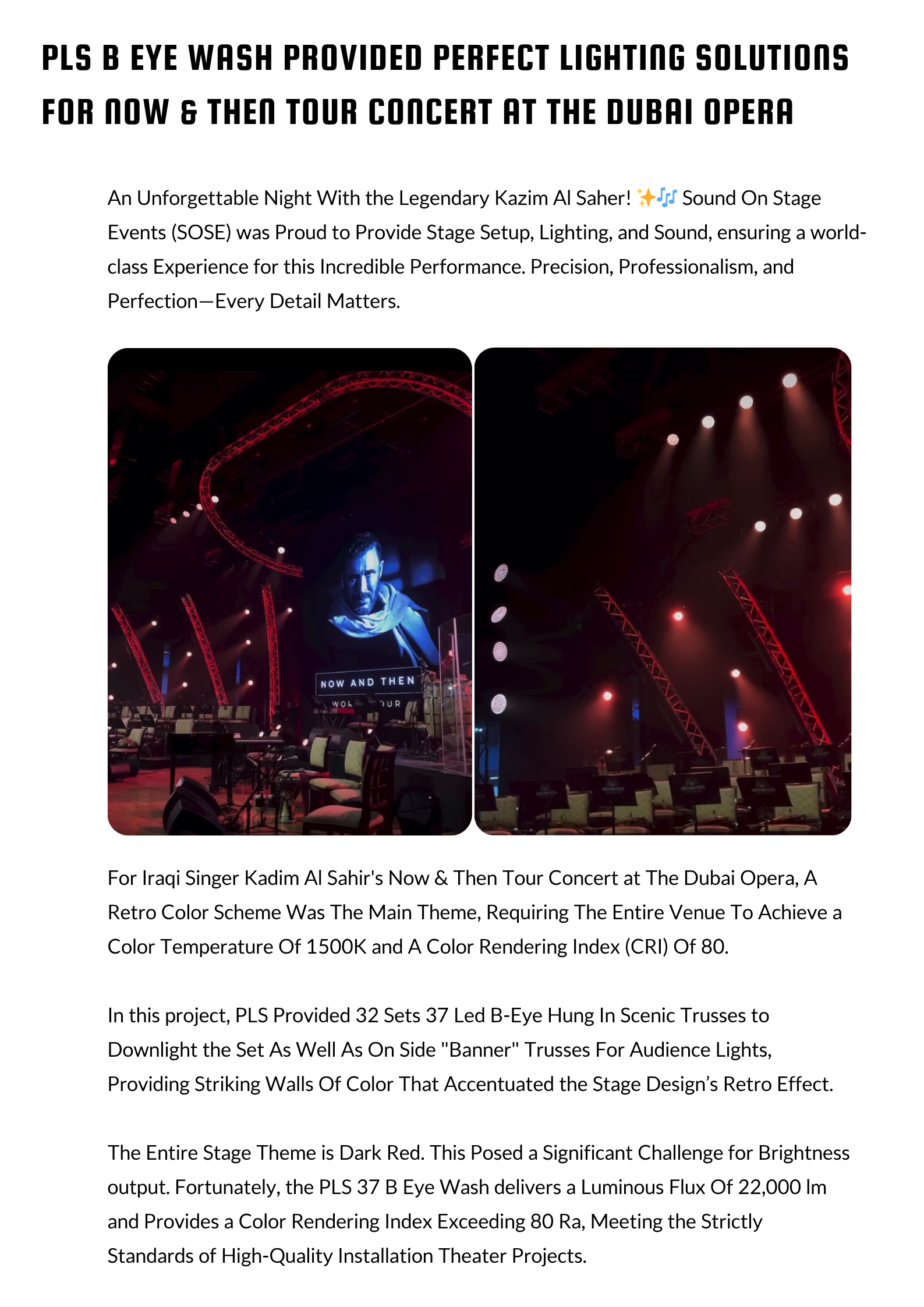 PLSPRO PROVIDES 37 B EYE WASH MOVING HEAD LIGHT FOR DUBAI OPERA.