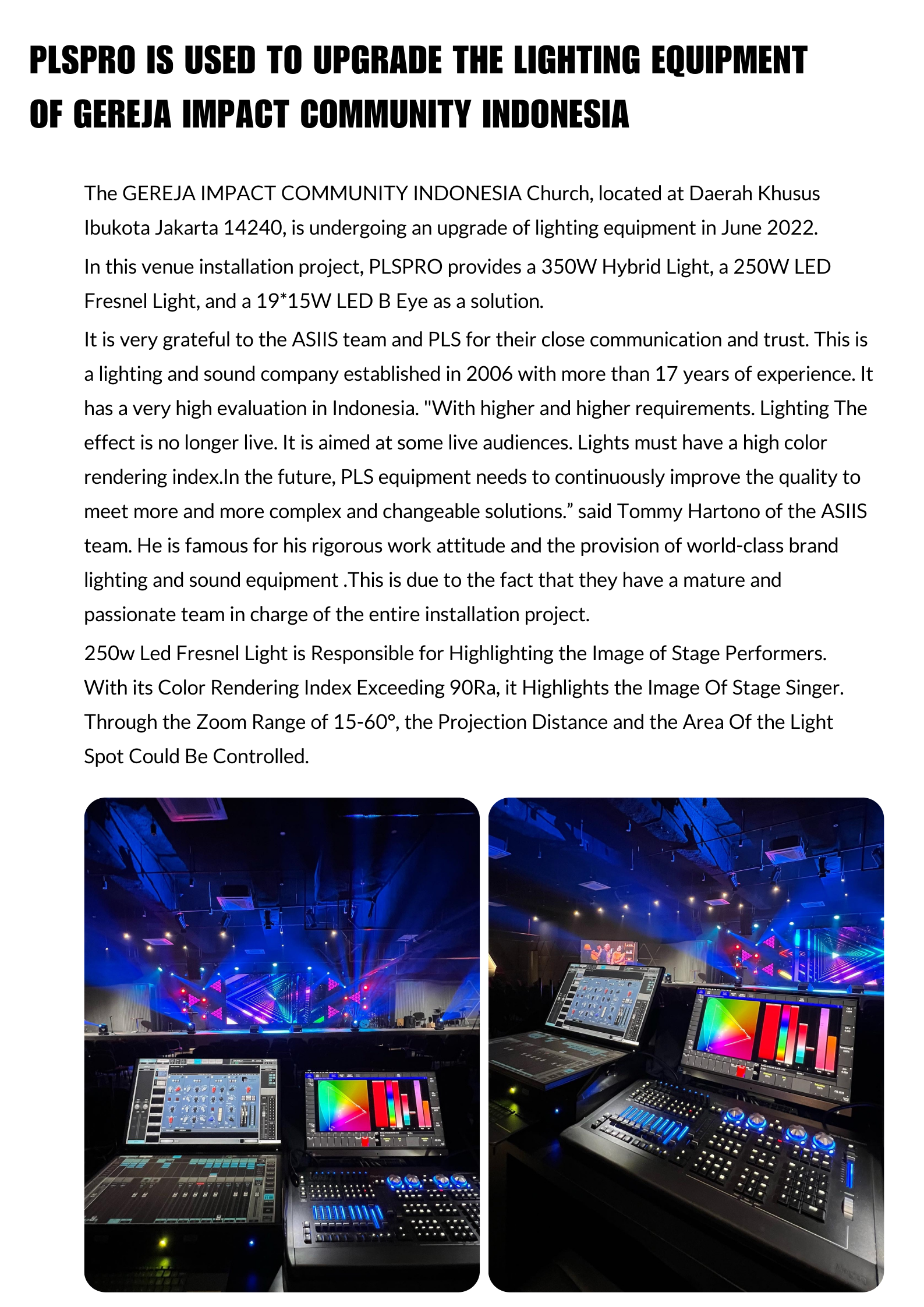 PLSPRO IS USED TO UPGRADE THE LIGHTING EQUIPMENT OF GEREJA IMPACT COMMUNITY INDONESIA